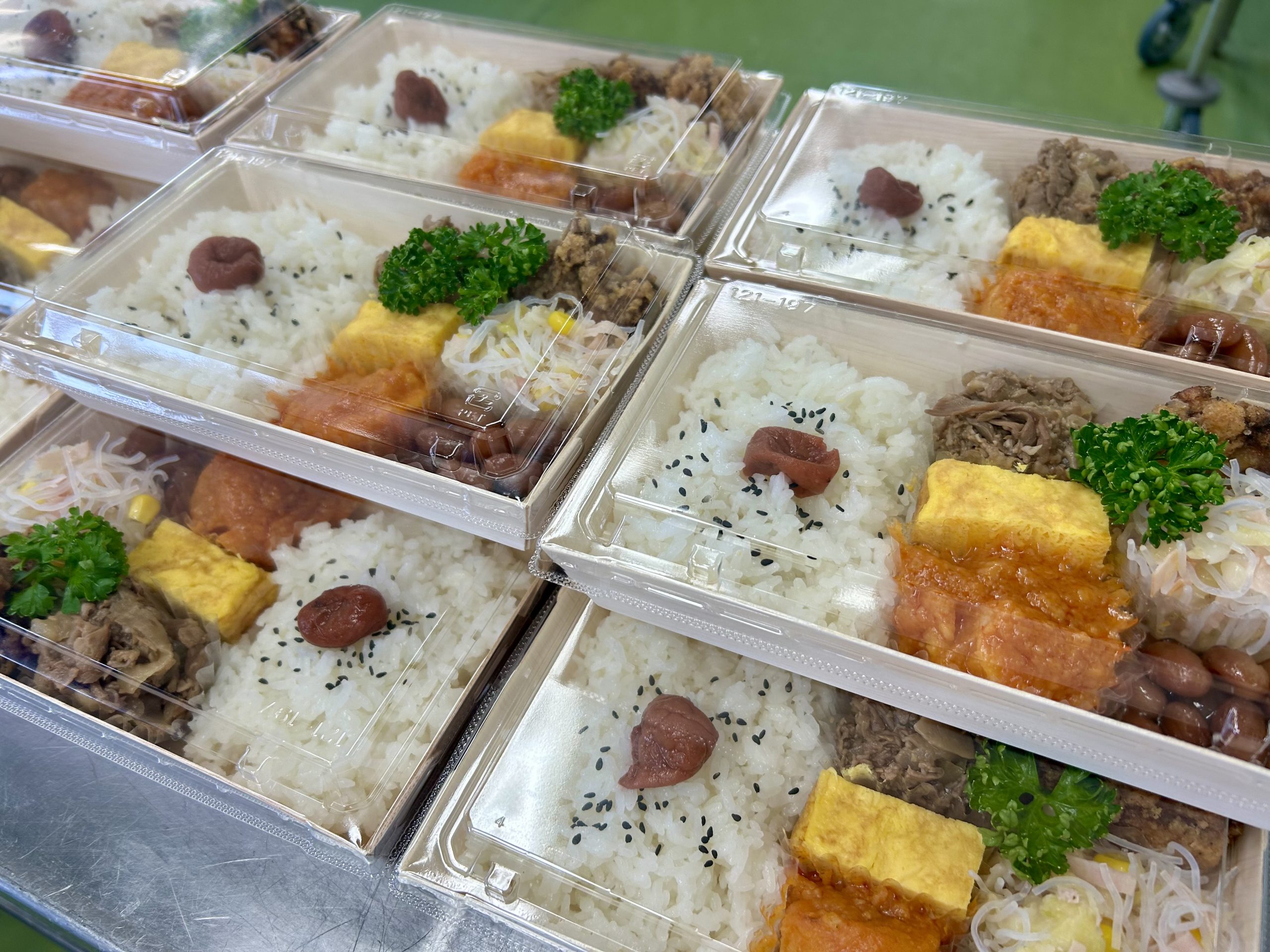 【今月の行事食】 先日のフロア運動会に合わせて、今月の行事食は「行楽弁当」でした🍱🎌 運動会のワクワクした気分を少しでも感じていただけるよう、彩り豊かなお弁当に仕上げました😊 卵焼きに日の丸ご飯など、皆さん笑顔で「おいしいね!」と大好評でした👏✨ 食事の時間も楽しい思い出のひとつになりました✨