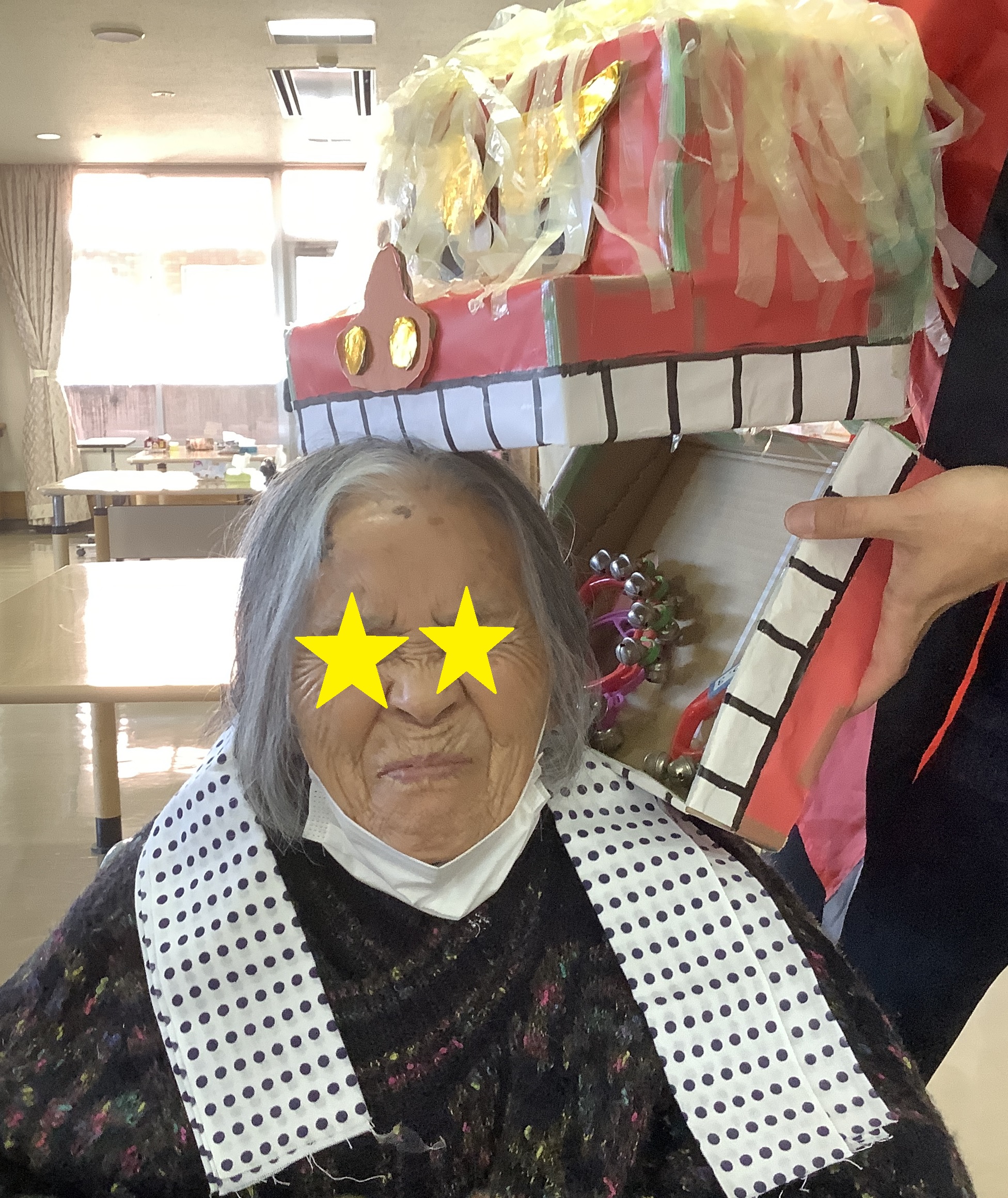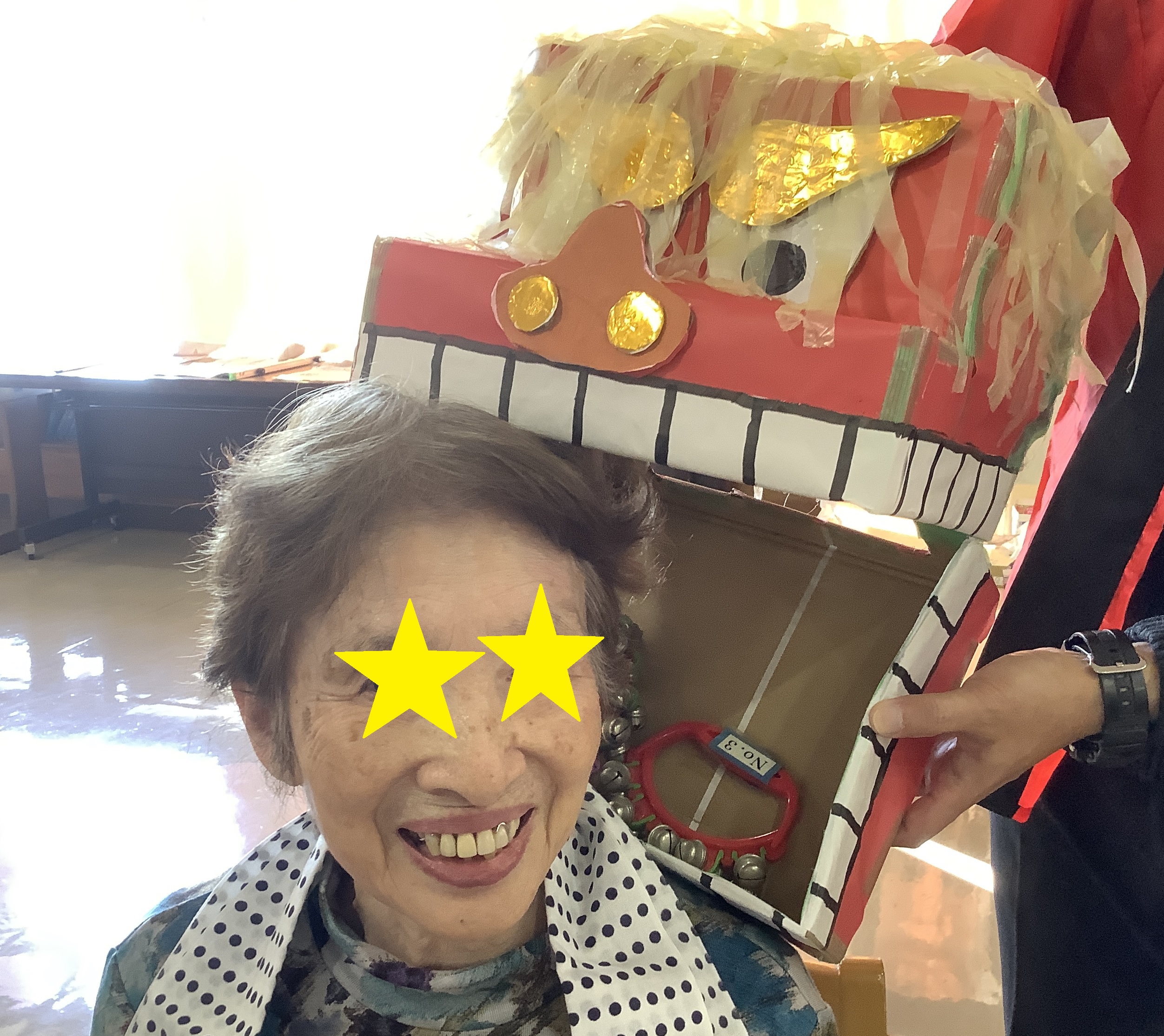 ~手作り獅子舞で無病息災~ お正月イベントで、職員手作りの獅子舞が登場しました。 利用者の皆さまに頭を噛んでもらい、「縁起物」として新年の健康を願いました。 写真撮影では、たくさんの笑顔が見られました。