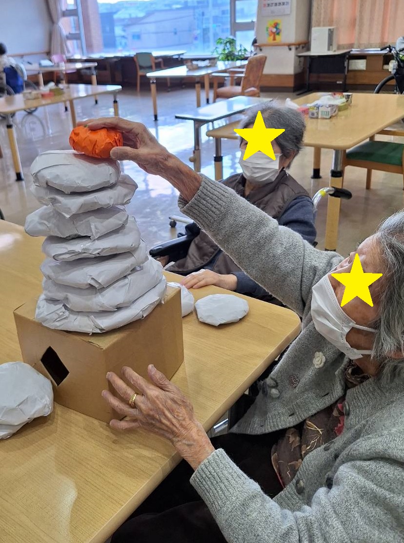 今週のレクリエーションでは、**「餅つみゲーム」**を行いました。