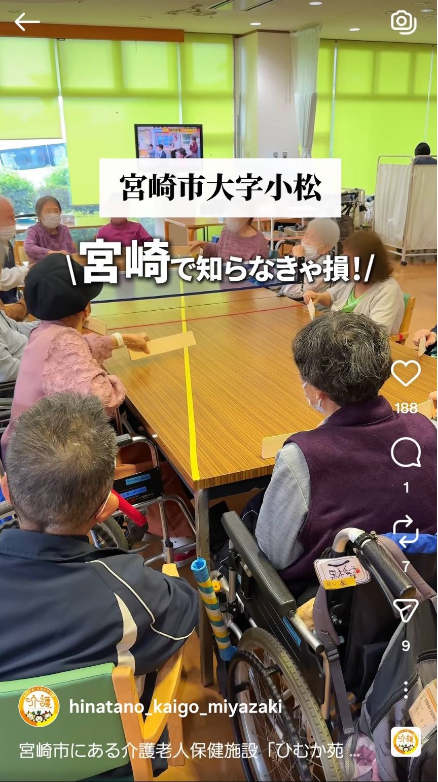 介護老人保健施設ひむか苑が、宮崎県公式Instagram「みやざき・ひなたの介護」にて紹介されました。