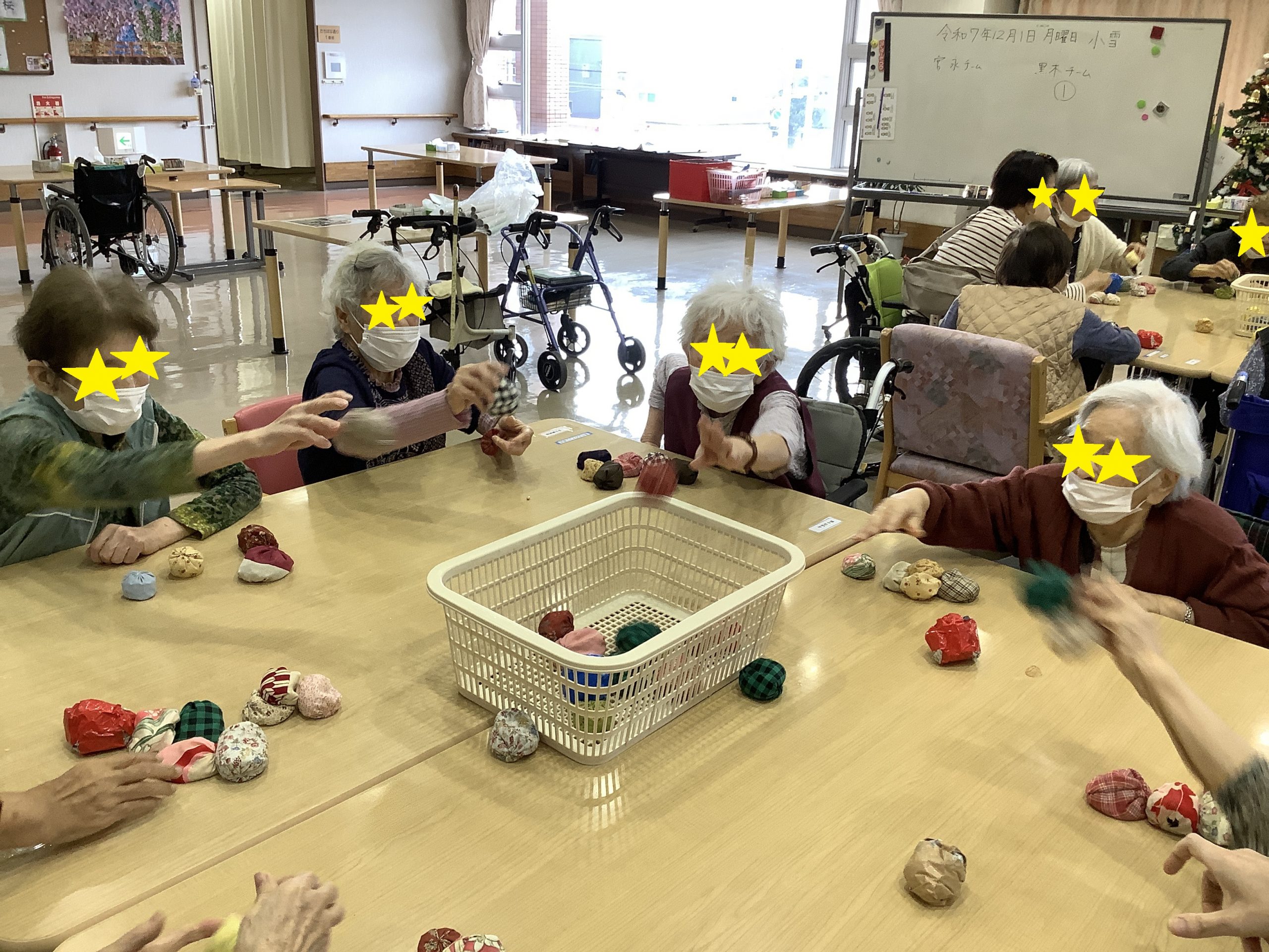 箱をめがけておじゃみを投げるゲーム。的に入るたびに歓声が上がり、大盛り上がりでした!